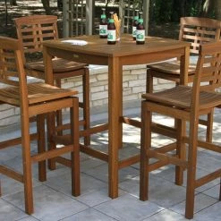 Best deal 🛒 Outdoor Interiors 5-Piece Square Eucalyptus Bar Height Dining Set With Bar Chairs ❤️