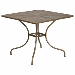 Best Pirce ❤️ Flash Furniture 35.5″ Gold Indoor-Outdoor Steel Patio Table Set With 4 Back Chairs 😀