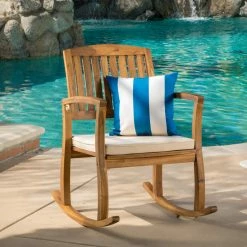 Best deal ✔️ GDFStudio Beulah Outdoor Acacia Wood Rocking Chair, Light Gray Finish, Dark Gray 🥰