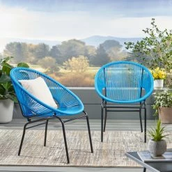 Brand new 🎉 GDFStudio Carolina Outdoor Modern Faux Rattan Club Chair, Set Of 2, Blue/Black 🔔