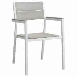 Outlet ⌛ LexMod Maine Dining Armchairs, Outdoor Aluminum, Set Of 2, White/Light Gray 🔔
