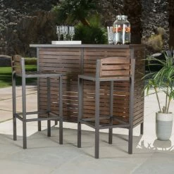 Buy 🤩 GDFStudio GDF Studio 3-Piece Isabel Brown Acacia And Rustic Metal Bar With Barstools, Set ❤️