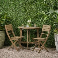 Brand new ⌛ GDFStudio Mia Outdoor 2 Seater Half-Round Wood Bistro Set With Folding Chairs, Gray 😍