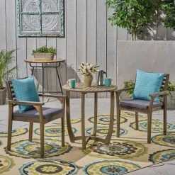 Coupon ✔️ GDFStudio GDF Studio 3-Piece Cassie Outdoor Acacia Wood Balcony Bar Set, Gray Finish 🔥