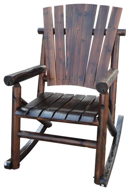 Single rocker without star; Durable log construction; Exclusive Char-Log finish and design; Crack resistant design and process; Heat curing, preserving, and finishing process resists mildew, mold and stains; Rustic look; Light varnish leaves the wood gleaming; Great for outdoors or indoors