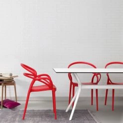 Bring cool contemporary style to your kitchen or patio by way of the Air dining table. This unique piece features a simple square top bolstered up by a sculptural, taper-legged base that doubles as art for your design. Hone its singular look further with the coordinating Air dining chairs (sold separately), or put your own spin on it with seats of your choosing.