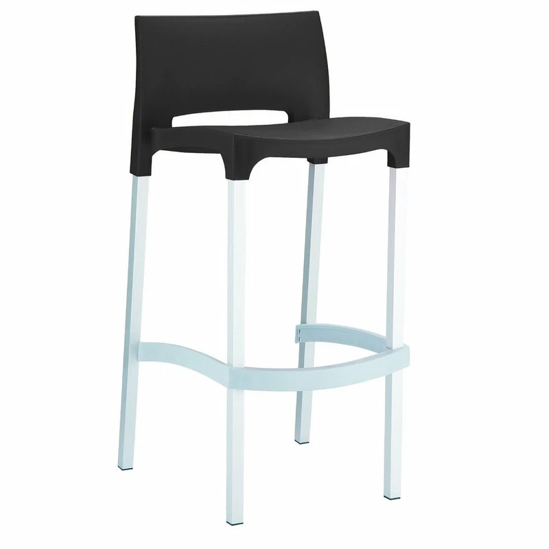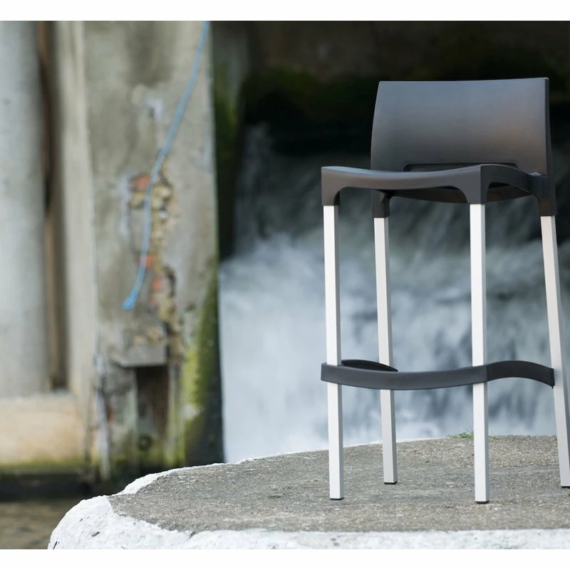 Boost your contemporary design with a little help from the Gio stools. This set is as sound as it is stylish, with durable resin seats, anodized aluminum legs and non-skid rubber caps that make them the perfect outdoor addition. More interested in how they’ll look inside? That’s fine, too. These seats look good just about anywhere.