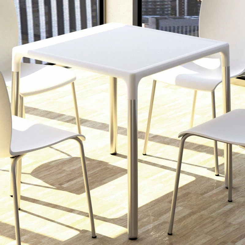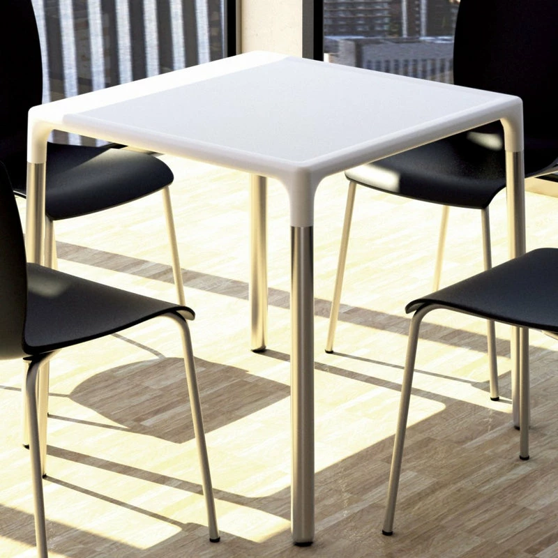 Bring a touch of fashion to your patio as well as function with the Mango dining table. This outdoor piece features a streamlined design complete with a durable, marine-grade resin top and sleek aluminum legs. Use it alongside a pair of modern seats for a coordinated look.