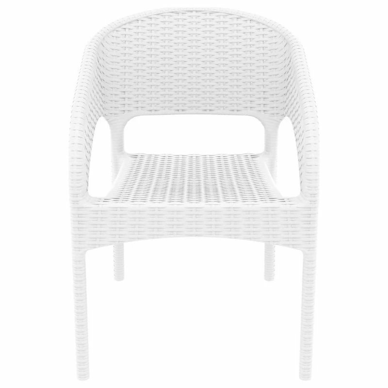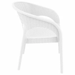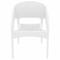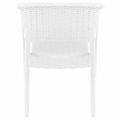 Panama armchair features Wickerlook resin which is a natural looking un-woven one piece furniture technology. Made with open weave design that resembles traditional woven wicker furniture. Will never unravel. No metal parts to rust, no moving parts that can break. Made for commercial durability. Perfect for hotels and restaurants. UV treated. Hose down for cleaning. Withstands outdoor temperatures summer and winter.Features