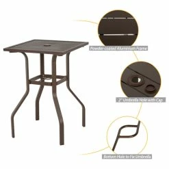 Durable Material-This 2PCS bar stool set is built from aluminum frame with durable, weather-resistant, UV resistant and quick-dry textilene fabric for years of use. This table is made of aluminum, it is all-weather, durable, rust-free, water resistant, and long-lasting. Every table foot has a plastic cap at the end so that it will not scratch floor when it is used indoor. Umbrella hole design helps to create a cool shadow with an umbrella during summer (Umbrella not included).