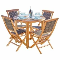Complete your kitchenette or patio space with this lovely round teak table from Havenside Home. Crafted of sustainably-sourced, plantation-grown teak wood, this table features a durable, naturally weather-resistant design with a full-spectrum of natural color variations.