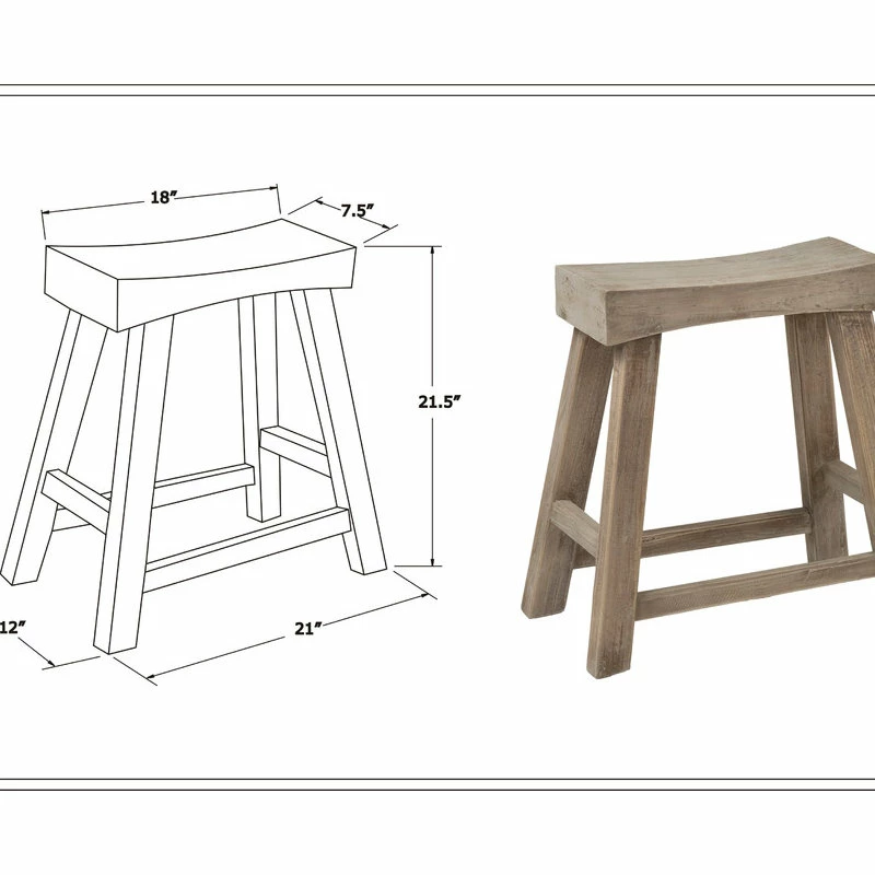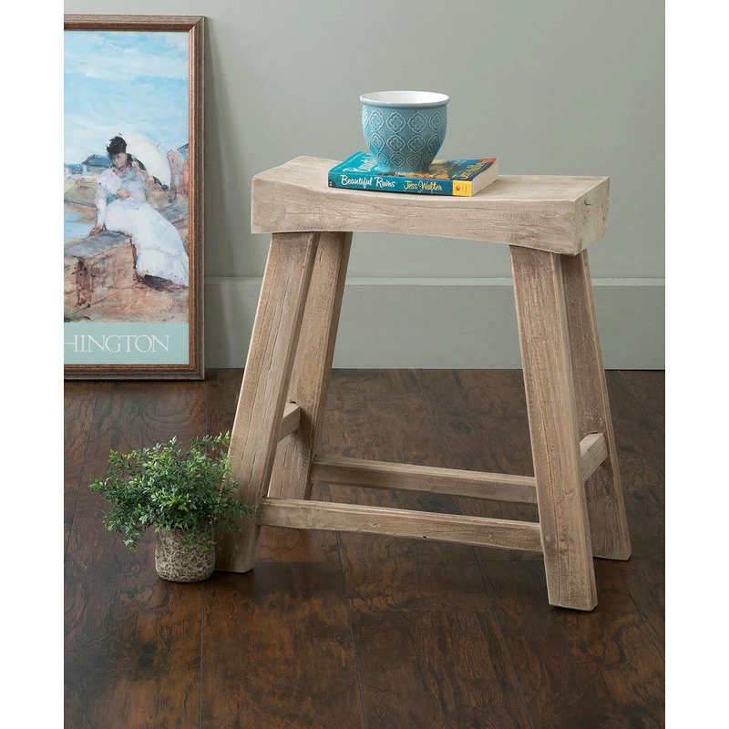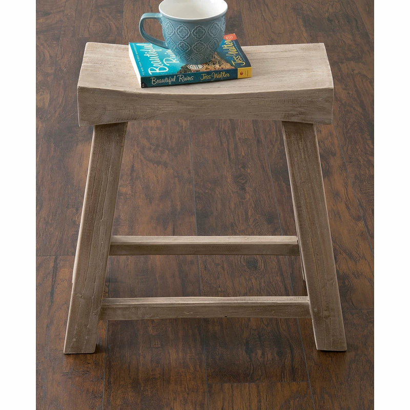 Showcasing a teak wood frame and rustic finish, this lovely stool is perfect pulled up to your vanity or as impromptu guest seating in the den.