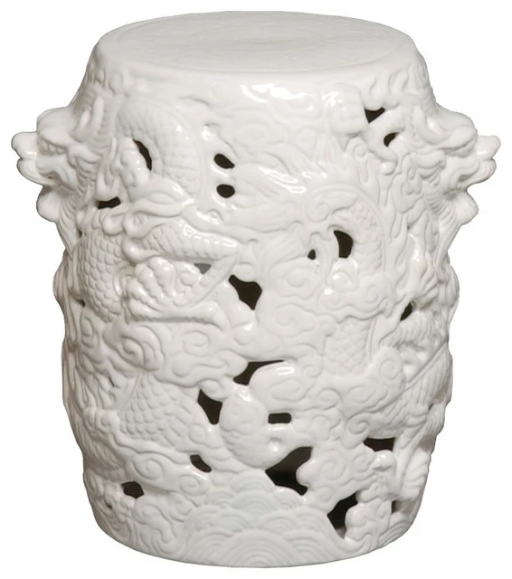 Breathe some stylish fire into your home with the Dragon Stool. This stool features the profiles of Asian-inspired dragons against a white finish.