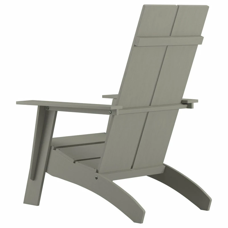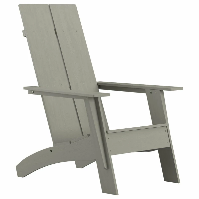 Furnish your lounge space with a fresh new take on a timeless classic with this modern adirondack chair. The streamlined back and arms give this patio chair a sleek profile that will complement any decor. The dual slat back boasts an unusual silhouette of clean, straight lines that look more modern than classic, making it an eye-catching addition to any backyard. Outdoor furniture takes a lot of punishment so durability is key when making a purchase. Constructed of weather-resistant polystyrene, this wood-like substance was designed to hold up in many environments and is strong enough to accommodate users up to 350 pounds. Stainless steel hardware securely fastens this chair together and is weather resistant for long-lasting performance. Unlike traditional wood chairs there is no back breaking sanding, painting, or sealing and this low maintenance porch chair won’t rot, peel, or splinter. Best of all, this adirondack lounge chair can be easily cleaned with water and a neutral detergent. This all-weather adirondack chair looks modern but retains the timeless comfort Adirondack chairs are known for. Pair this chair with our all-weather poly resin wood adirondack ottoman footrest for total comfort.