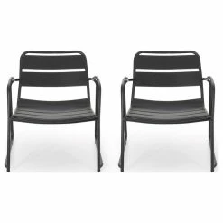 Offer your backyard or patio space charming seating and it will offer you ultimate relaxation in return. Featuring refreshing rounded frames and bold slat seating, our set of club chairs offers a sleek and comfortable space for any outdoor area. This outstanding chair set provides a delightful modern twist to your outdoor decor, allowing you breezy comfort and effortless lounging. Showcasing a sophisticated matte finish, our lovely chairs are perfect for soaking in some warm summer sun in the great outdoors.