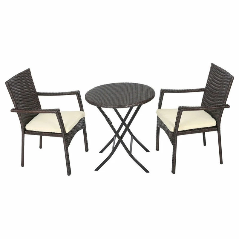 TRANSITIONAL: The transitional style of this bistro set is sure to give your outdoor space a sleek yet classic look that will match with any type of decor that you currently have. With a woven wicker look and minimalistic frame, this set will give your space an instant upgrade in style and comfort.