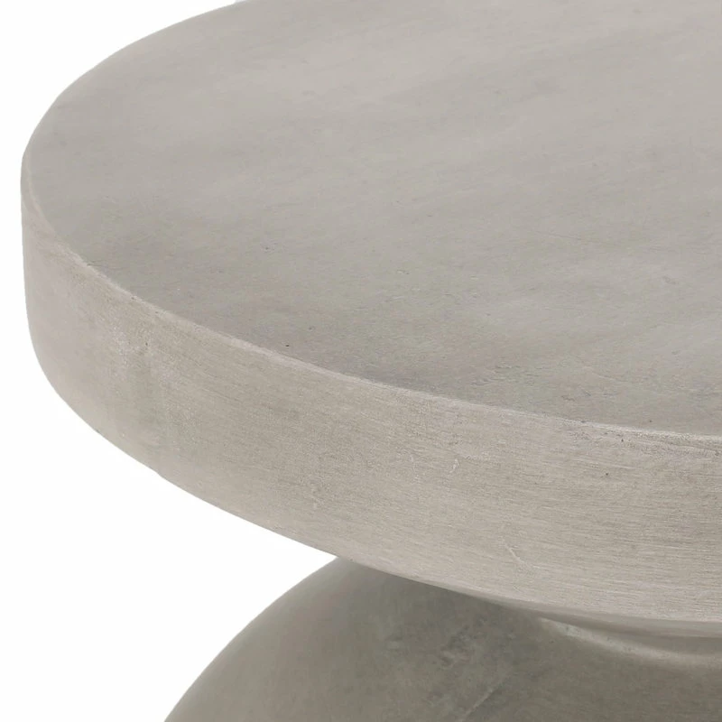 Smooth lines and classic style can make or break your outdoor decor. With a smooth lightweight concrete structure and modern touch, our side table offers high durability and stunning looks for your backyard or patio. Ideal as a decorative piece or as an end table next to your chat set or sectional, this piece will hold any snacks or chilled drinks in sophisticated grace. Finished with a beautiful turned pedestal design, this table is a seamless addition to any space.