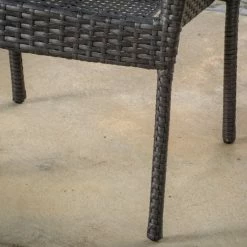 Enjoy outdoor dining and relaxing with the Antonio dining set. Constructed out of beautiful wicker, this table and chair combo is durable and comfortable. This design will go well with any garden or backyard arrangements and landscaping. Plus its stack-able chairs can make storage and transport a breeze.