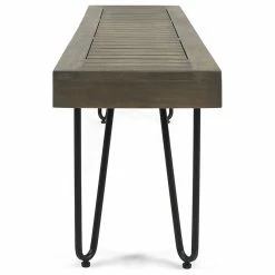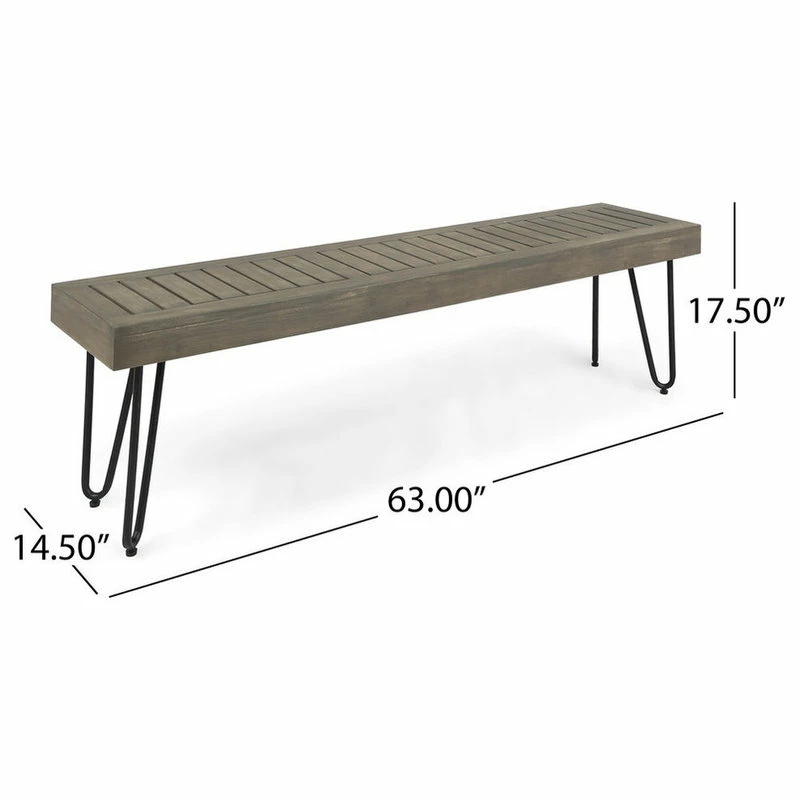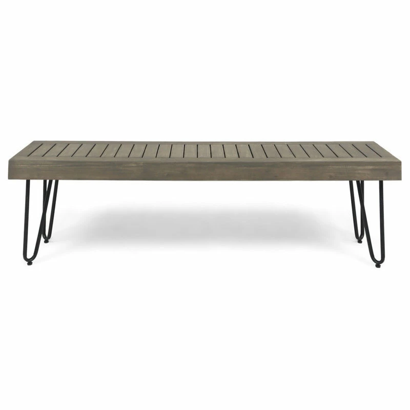 This acacia wood bench is the perfect addition to any patio or backyard. Featuring hair pin iron legs along with a outdoor treated and finished this is a must have for any backyard. Wide enough for three people to sit comfortable, this bench is sure to please.