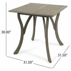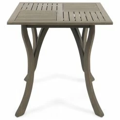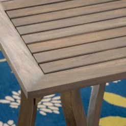 Enjoy this stylish outdoor acacia wood table, prefect for any patio set up. Feature a beautiful teak finish, this square table is a wonderful addition. The smooth lines of the legs give the table a calm, stylish look that complements the perpendicular wooden slats featured on the table top.