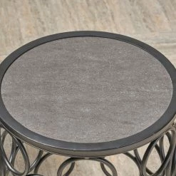 This ceramic tile side table with a powder coated iron frame is a wonderful addition to your patio. The iron frame combined with the tile table top ensures that this side table can match any d””_””_cor you currently have without having to change anything. Small and light weight enough to be moved around at a moments notice. Enjoy this table in your backyard.Includes: One (1) Side Table