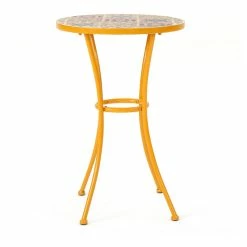 This end table is a great way to add a splash of sunlight to your patio. With yellow accents on the tile and a yellow orange powder coating on the iron frame, this table is its own ray of sunshine. Featuring bright flower based tile designs, this wonderful accent table is sure to brighten your day.