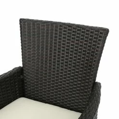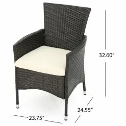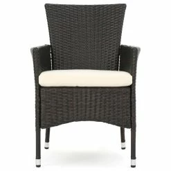 The Clementine Outdoor Brown Wicker Dining Chairs are made out of rich, brown PE wicker that will complement any nearby landscape. The all-weather wicker allows these chairs to last in any weather condition with little maintenance, and the water resistant cushions provide added comfort, and are easy to maintain. These sturdy chairs are also stylish and can be placed together or coordinated with any outdoor dining set.