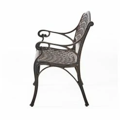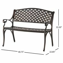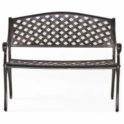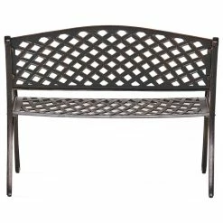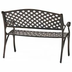 The Eastwood Garden Bench exudes great elegance in its form. This durable bench is made from heavy duty cast aluminum and will be a great addition to any outdoor patio. The low maintenance bench is designed with a cross hatch pattern and finished in antique copper. It features a comfortable slanted backrest and a stable base to give you years of enjoyment. Add a bit of class to your outdoor space with the Eastwood Garden Bench.