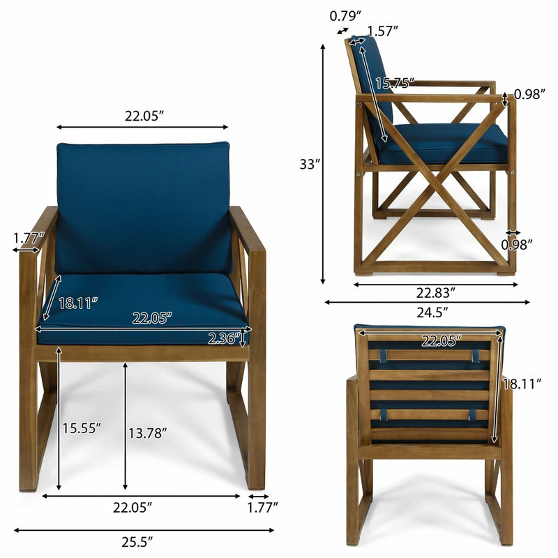 EASY TO MAINTAIN: The acacia wood is naturally resistant to most elements, and by storing your cushions instead during non-use, you prolong the life of your set. Apply teak oil as needed to maintain appearance.