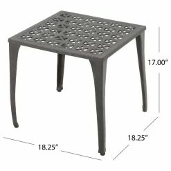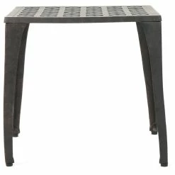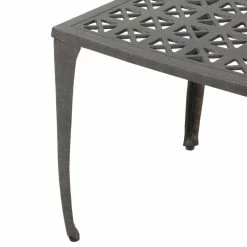 A new twist on a classic look, this handsome outdoor side table features intricate grillwork made from cast aluminum, offering extreme sturdiness while staying light enough that a single person can move it around their patio, backyard or garden with ease. A perfect place to set down everything you and your guests need for an afternoon enjoying the fresh air.