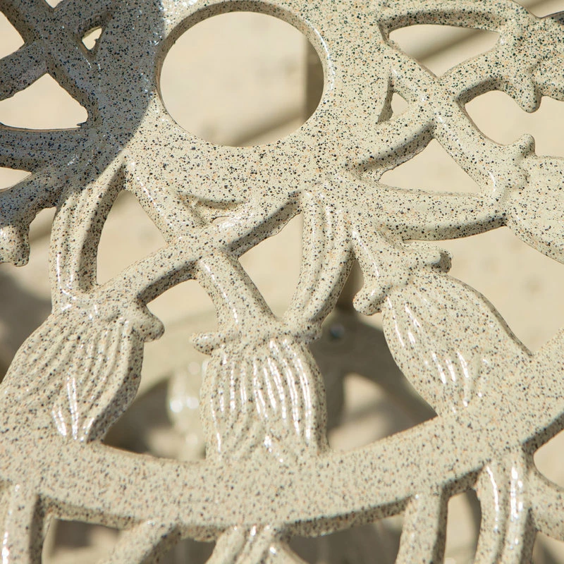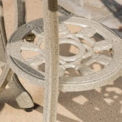 Enjoy a Sunday morning brunch in the comfort of your own backyard or patio space with the perfect intimate setting. Our gracefully designed bistro set brings your outdoor space a whole new level of luxurious vintage looks that gives your decor a classy atmosphere. Made from a sturdy metal frame, this set offers exceptional durability for effortless relaxation. This bistro set is finished with a beautiful tulip design featuring intricate details to make this an understated yet unique addition to your home.