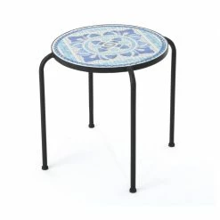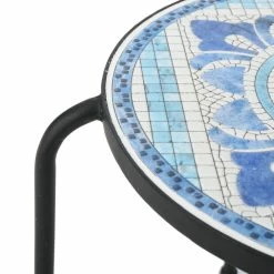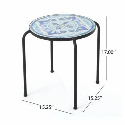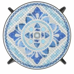 This tiled accent table is a wonderful way to add a breath of fresh air to your patio. With a blue and white color pallet, the black iron frame helps the color of this table pop, bringing out the brightness of the table. The fleur de lis stylized pattern further