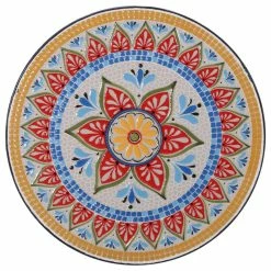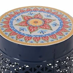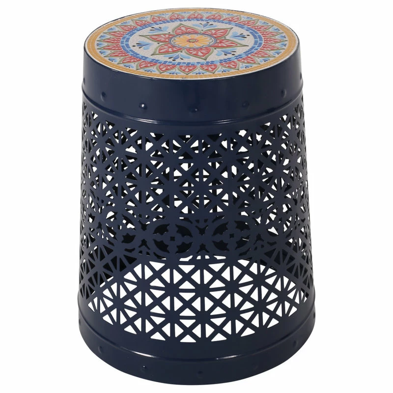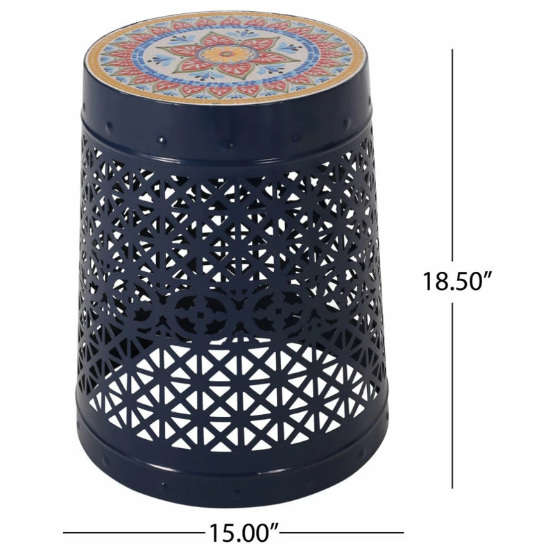 Combine function and charming style to create near perfection for your outdoor space. With a charming cylindrical structure and lace cut design, this end table is an excellent sidekick to your outdoor furniture, perfect for holding a tray of snacks or a pitcher of lemonade. This features a gorgeous tile mosaic tabletop that brilliantly blends a traditional touch with a sleek modern look. Also providing incredible stability, our accent table will have no problem keeping your patio in style all summer long.