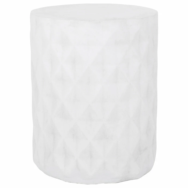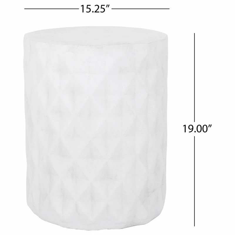 - A TOUCH OF PERSONALITY: Bring your outdoor space to life with our end table that features a simple cylindrical structure and a geometric dimensional diamond pattern. With charming aesthetics, this side table will be sure to enliven any home.