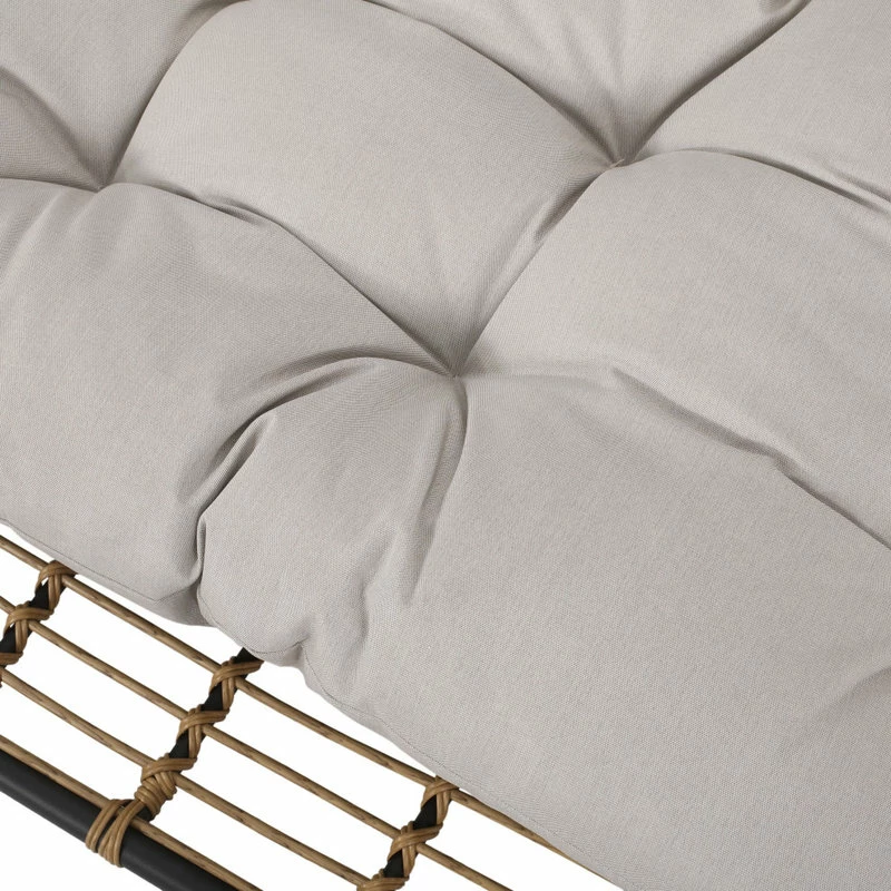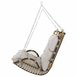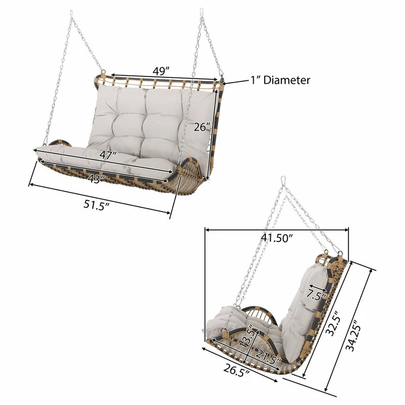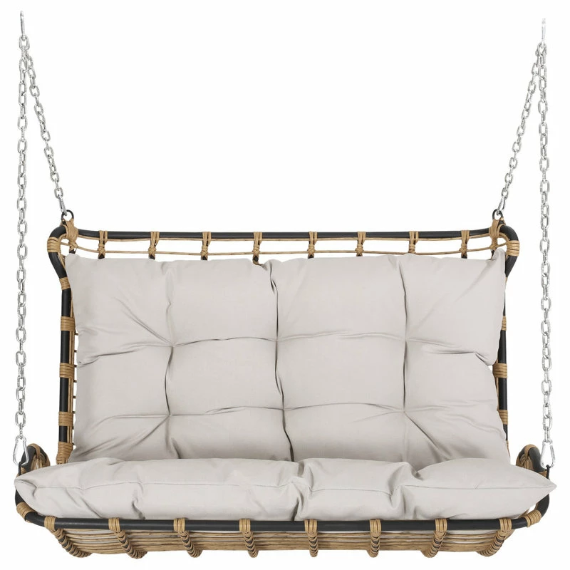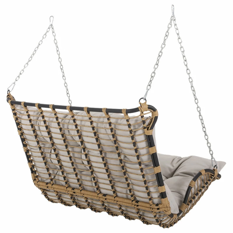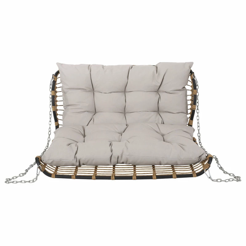 Enjoy the serenity of the great outdoors with soothing rocking motions. With a durable powder-coated iron frame and beautiful wicker-wrapped design, our hanging porch swing offers any garden or deck a calm space for you and your family to unwind. Completed with plush water-resistant cushions, this swing not only enlivens your soul but also your outdoor space with a boho-inspired aesthetic. Whether you are enjoying the summer sun or cuddling up with a loved one, this porch swing has you covered.