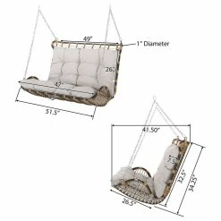 - DIMENSIONS: Choose an accessory that is the perfect size for you and your furniture. This swing is 51.50″W x 41.50″D x 34.25″H and has seat dimensions of 43.25″W x 20.25″D x 3.25″H. The swing comes with 8 feet chains that are long enough to accommodate a standard 8-foot ceiling. The weight capacity is 800 pounds.