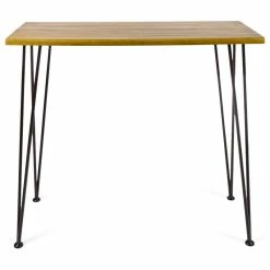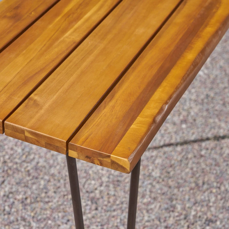 MODERN INDUSTRIAL: Our bar set incorporates a powder-coated frame with sleek wooden slats to create an understated modern industrial design. Featuring smooth metal contrasted by natural wood, this set offers a chic aesthetic to any home.