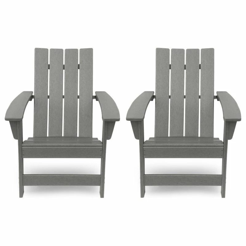 Bring home our charming set of Adirondack chairs for a hint of classic styling that will transform your outdoor space into one of refinement. Made with an extremely durable high density resin material, our Adirondack chairs bring a beautiful rustic influence to your backyard or patio and tops it off with a sleek modern finish. This iconic structure offers water-resistant and impact-resistant properties, making it perfect for any deck, patio, or poolside relaxation to create a charming space for all to enjoy.