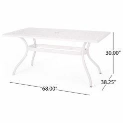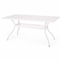 Dine, converse, and make memories in classic style with this gorgeous outdoor dining table. Whimsical, timeless floral and lattice patterns give this stunning table a refined aesthetic. Made of sturdy cast aluminum for its impressive durability, this high-quality table is a fine choice for any patio, pergola, or yard. Curved saber legs tie the traditional design together impeccably, and the overall elegance is sure to change the way you spend your downtime. Keep it versatile and timeless with this charming outdoor dining table.
