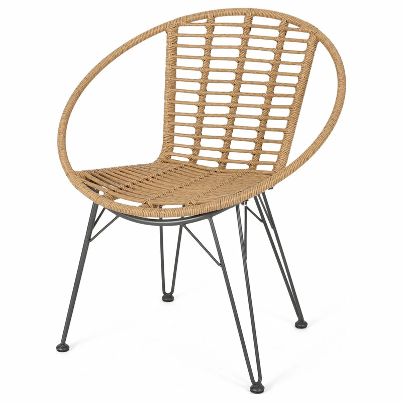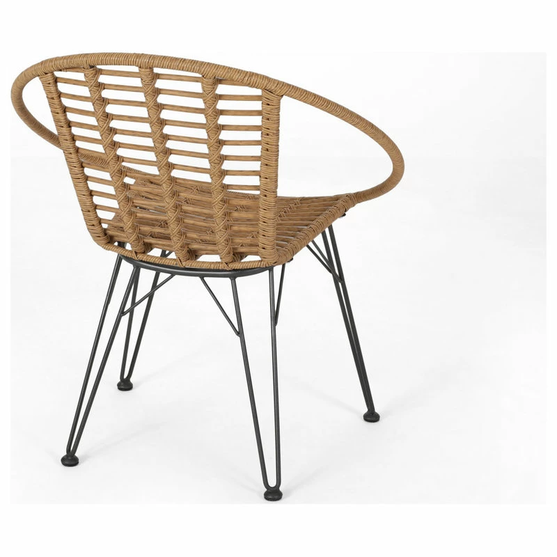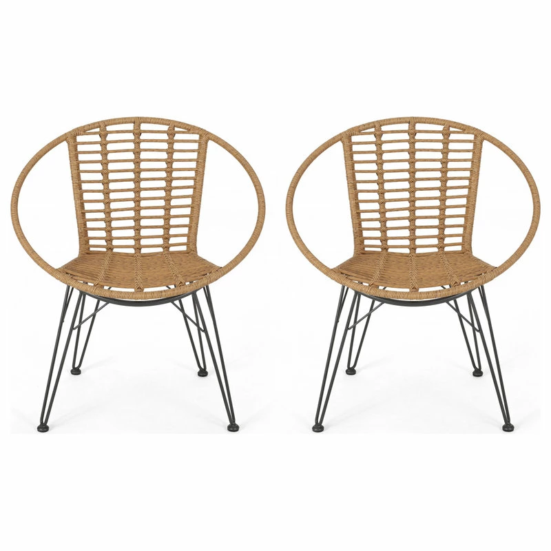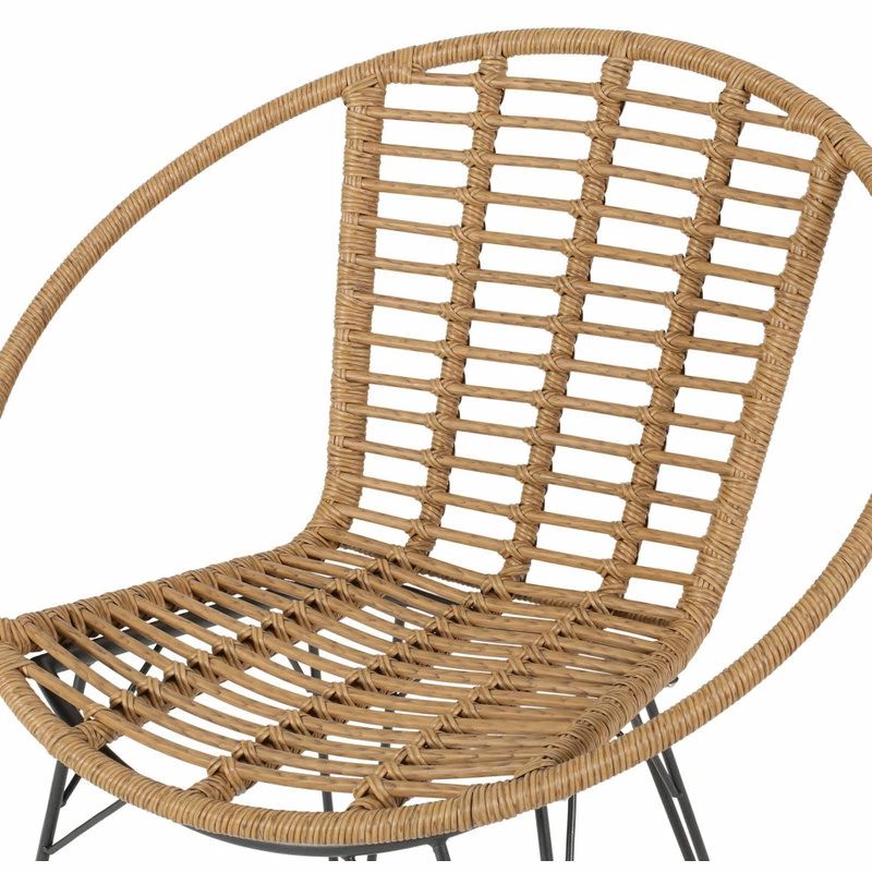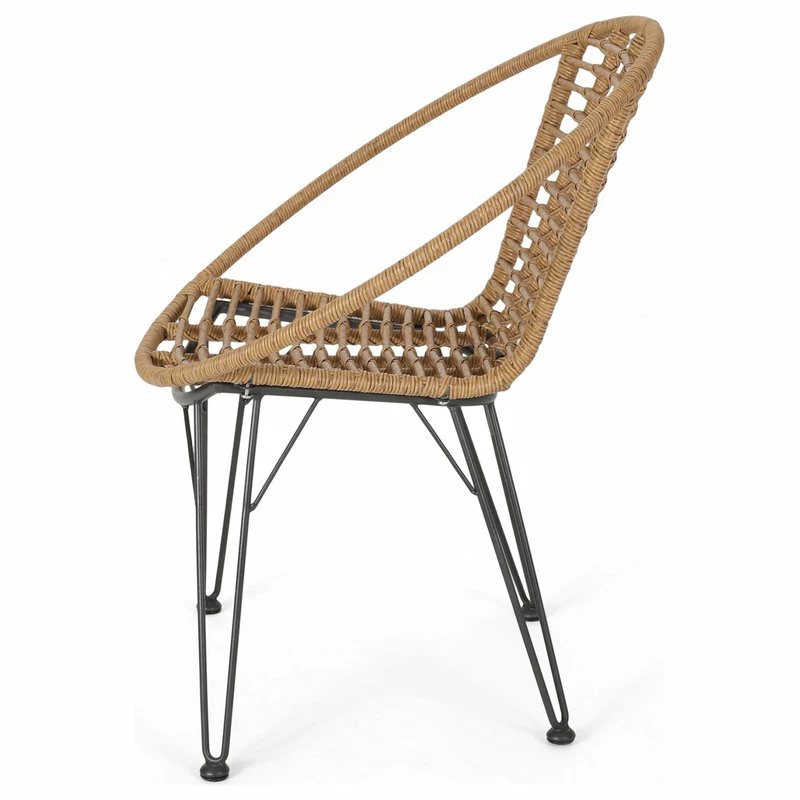 What’s not to like about a dining chair set that cradles you with comfort while you eat? Our dining chairs perfectly blend rattan and metal to emphasize its superior excellence and bring your outdoor space together with a flourish. This set is finished with a thin angled frame, providing a minimalistic yet durable structure that offers a stylish flair to your dining set. With a wrapped rattan design and cozy basket shape, this set brings a modern twist to a classic look, making this ideal for any style of decor.