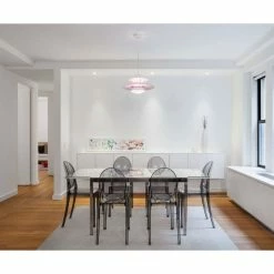 Due to the glossy finish the clear chair, you will notice some swirls. Single injection molding will have molding line and injection point at some spots. They are not defected. Also blue/purple hue appears on the chair but will fade out over time.