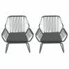 Camelback Resin Wicker Patio Chairs (Set of 2)These wicker patio chairs prove that there’s no need to sacrifice style when you furnish your outdoor spaces. The steel construction of these wicker patio chairs gives them the look of fine antique wood but the all-weather durability of heavy-duty metal. These chairs stack for easy storage and support up to 300 pounds of weight, allowing you to entertain without worries.
