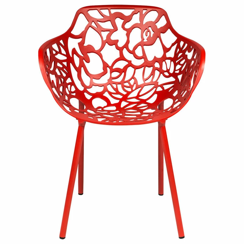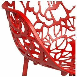 The attractive flower design of this chair is an asset for the home of any modern furniture lover. The eye catching stylish design will have your guests raving over your decor. This is the sort of outdoor accent chair that makes a statement. The Devon Chair is constructed of an aluminum frame three times stronger than steel with a painted finish, crafted to stand the test of time. The unique cut-out design lends a modern touch of beauty that can work in a variety of spaces. Great for transforming any area in your home or backyard into an elegant dining area.