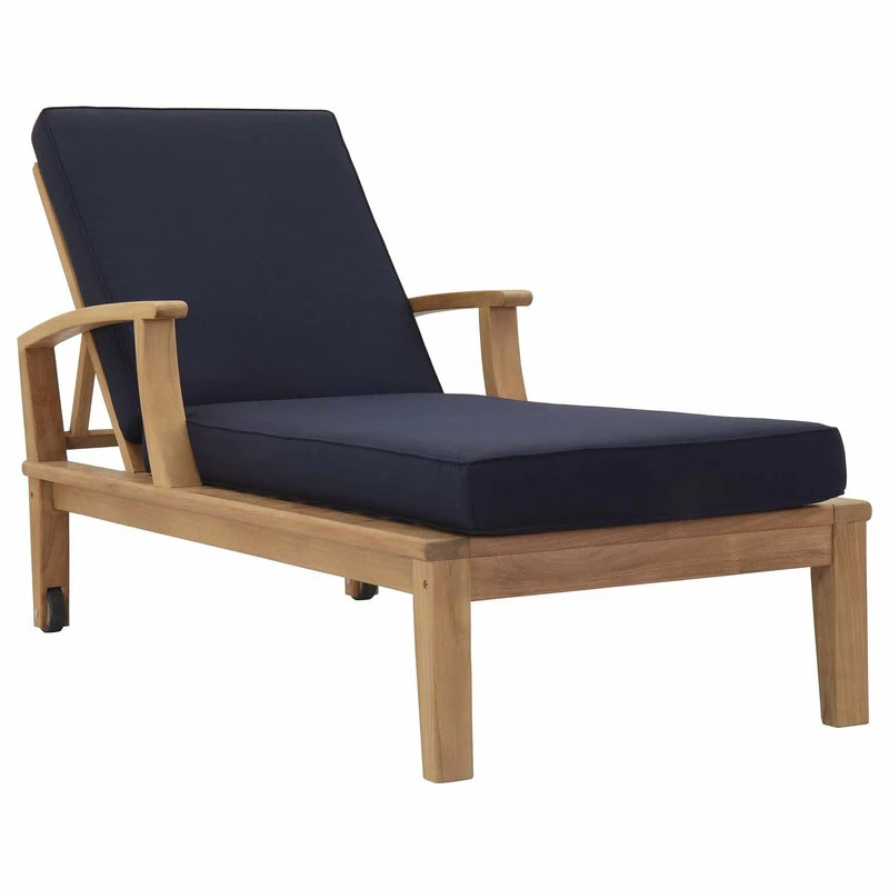 Harbor your greatest expectations with this luxurious solid teak wood outdoor set. Marina has a seating arrangement perfect for every member of your crew as you breathe the fresh, crisp air of a day spent with friends and family. Known for its natural ability to withstand extreme weather conditions, teak is the wood selection of choice for long-lasting outdoor furnishings. Now you can enjoy Marina๏ฟฝs durable construction and all-weather cushions, alongside a modern design that persistently looks new and welcoming. Zoom in on the product image before you, and see the exquisite texture and detail for yourself. Set Includes: One – Marina Outdoor Patio Teak Single chaise
