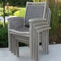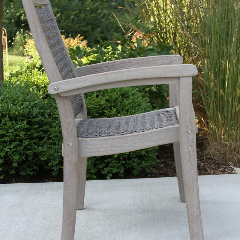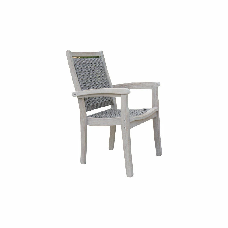 The Grey Wash Eucalyptus & Driftwood Grey Wicker Dining Chair is made from sustainable, plantation-grown eucalyptus, Stainless steel hardware, protective resin footpads, and HDPE all-weather wicker for long-lasting outdoor use and exceptional durability. The grey wash texturing process begins with machine and hand brushing to create a grainy texture and vintage look. Three coats of high-quality all-weather stains are applied for an elegant look and feel.