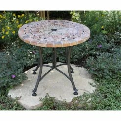 Always cover or store away your furniture during harsh weather and winter. Stone sealant should be applied once a year to protect the grout and natural stone from the elements. If stone and grout become soiled, use a mild detergent with water and a soft cloth / soft brush for cleaning only.