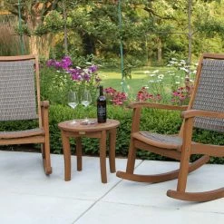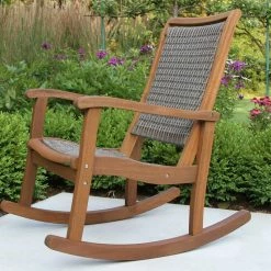 These all-weather resin wicker and eucalyptus rocking chairs are made from sustainable, plantation-grown eucalyptus hardwood. Being on-trend, we have designed this rocker with our comfortable and carefree HDPE all-weather woven wicker. This combination of materials on the rocker brings incredible comfort and style!