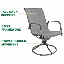 - Attached to a powder-coated steel frame for durability and long-lasting use.These are able to rock and swivel, which makes them ideal