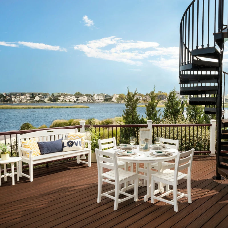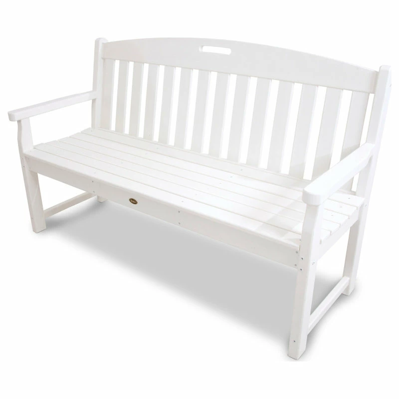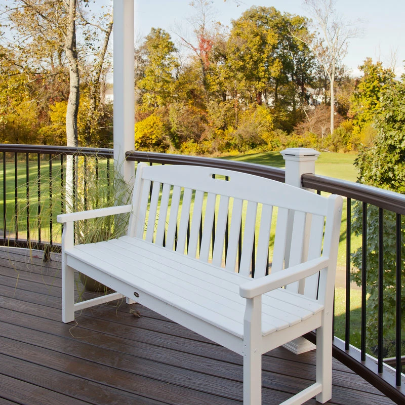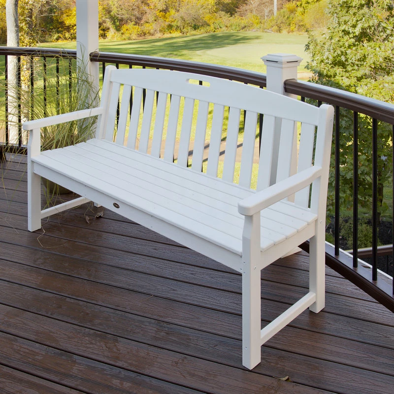 The stylish yet roomy Trex Outdoor Furniture Yacht Club 60″ Bench is an ideal way to add more seating to your outdoor entertaining space. The seat is contoured for greater comfort while the slats are designed to be easy on your back. Available in a variety of attractive, fade resistant colors, youre sure to find just the right match to coordinate with your Trex deck. Backed by a 20-year warranty and made with solid HDPE recycled lumber, you dont have to worry about it rotting, cracking or splintering like traditional wood furniture. And its extremely low-maintenance, as it doesnt require any painting or staining. It also resists weather, food and beverage stains, and environmental stresses.