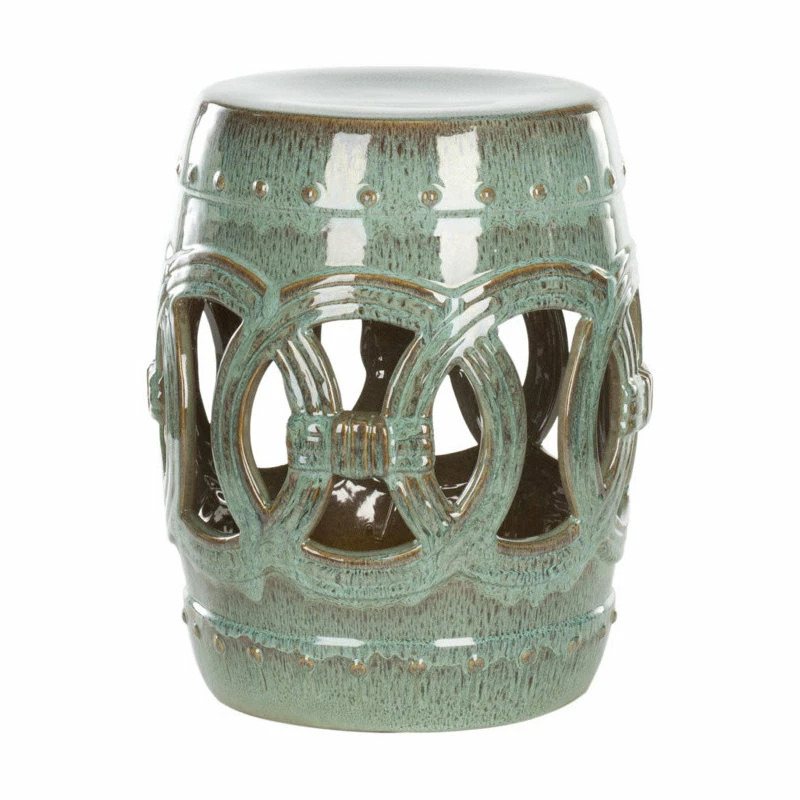 Indoors or out, this classic Chinese garden stool design lends a touch of Feng Shui serenity. Inspired by the Asian linked coin motif believed to bring good luck, our Double Coin stool is lustrous in high fired ceramic.